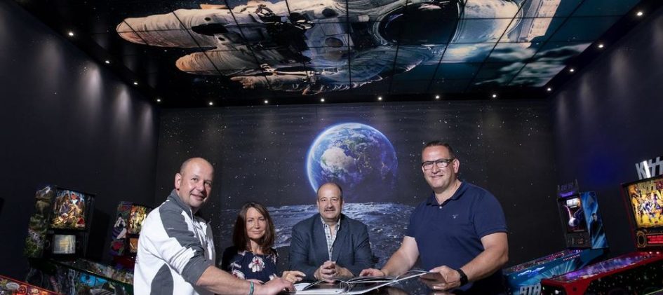 An der Decke, hoch über den Köpfen, schwebt ein Astronaut der Apollo-11-Mission in voller Montur. Die robusten Sohlen seines Raumanzugs haben die Oberfläche des Mondes noch nicht touchiert, während sich die Besucher der Silverball-Lounge der Firma Trobau Wittlich GmbH & Co KG schon gelandet wähnen. Vor ihnen liegen – auf einer Fototapete – die Krusten […]