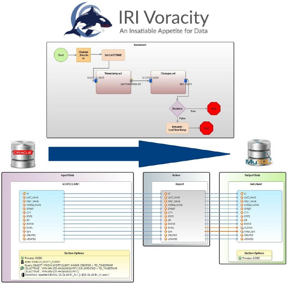 Änderungen erkennen und aktualisieren: Inkrementelle Datenmaskierung und Mapping! Inkrementelle Datenreplikation, Maskierung, Integration (ETL) und andere Datenaktualisierungsoperationen sind in häufig aktualisierten Datenbankumgebungen üblich. Diese Jobs erfordern die Erkennung von Ergänzungen und Aktualisierungen von Tabellen. Solche dynamischen Operationen lassen sich in IRI-Voracity-Workflows, die in der IRI-Workbench (WB) entworfen und ausgeführt werden, leicht automatisieren.