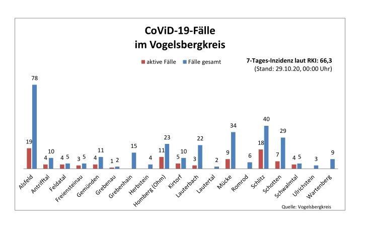 Vogelsbergkreis. 20 neue Corona-Fälle meldet das Gesundheitsamt des Vogelsbergkreises. Gleichzeitig sind in den vergangenen Tagen 14 Patienten genesen. Laut Robert Koch-Institut liegt die Inzidenz bei 66,3.