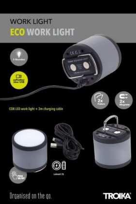 ECO WORK LIGHT bringt das Licht genau dahin, wo du es brauchst. Entweder per Akku oder mit dem 3 m langen USB-Kabel. Befestigung? Kein Problem, zwei ausklickbare Haken und zwei starke Magnete machen das Arbeitslicht extra variabel. 100 Lumen für deine Arbeit und 65 x 65 x 63 mm klein. Aus schlagfestem ABS-Kunststoff, schwarz/titanfarben Arbeitslicht, […]