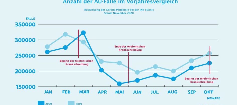 IKK classic-Monatsreport: Krankheitsgeschehen und Corona-Fälle im Oktober 2020