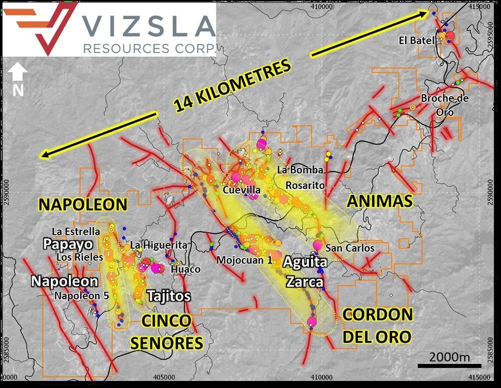 “2020 has been a transformational year for Vizsla with multiple discoveries made across the Panuco district. The Company has completed 27,400 metres up until December 5th and is focused on expanding the mineralized zones at Napoleon, Papayo, Tajitos and our new discovery at Aquita Zarca. Material updates for these zones will be released as they become available in January 2021,” commented Vizsla President and CEO, Michael Konnert. “Vizsla has continued to discover new veins and extend sampling across the fourteen-kilometre-wide breadth of the Project and these targets will be included in our expanded 2021 drilling program. Panuco really is a district scale opportunity with the unique advantage of having a mill providing a rapid pathway from discovery to production.”