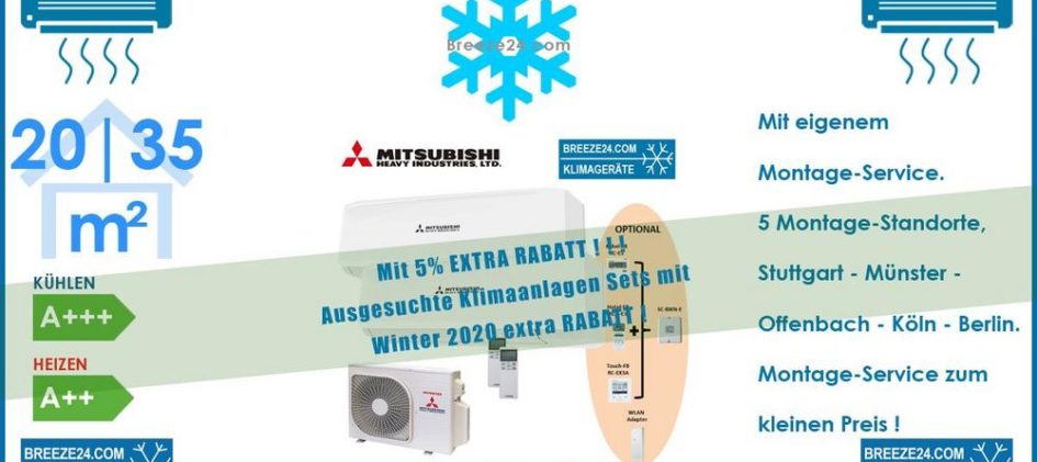 Jetzt kaufen mit 5% Winter Rabatt ! ! ! Mitsubishi Heavy Klimaanlage Wandgerät SRK 20 ZS-W + SRK 35 ZS-W + Außengerät SCM 40 ZS-W R32 Set für 2 Zimmer mit je 20 | 35 m² Wandgerät zum Kühlen und Heizen – besonders leiser Betrieb bis zu 19 dB(A) – Individuell einstellbare Pendellamellen – Wochentimer-Funktion […]