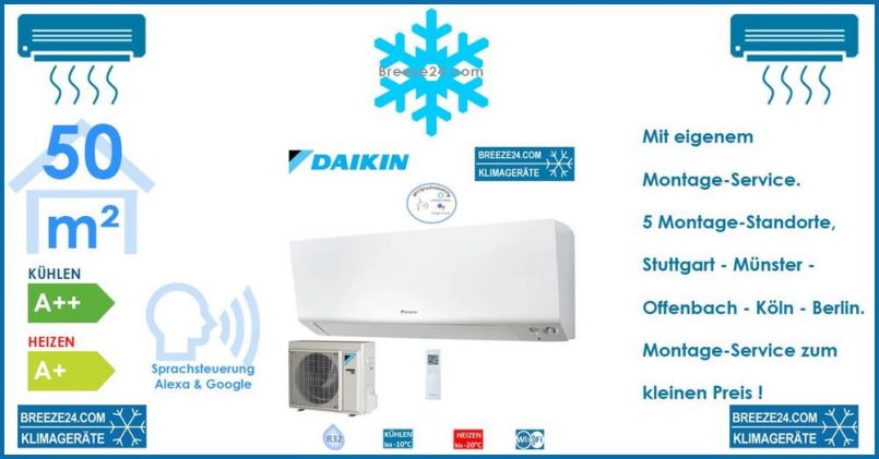 Neu im Lieferprogramm von Breeze24.com DAIKIN Klimaanlagen Set FTXM50R R32 Wandgerät Perfera + RXM50R 5,0 kW R32 für 1 Zimmer mit 50 m² Fläche Bei aktivierter Funktion „Heat Boost“ heizt diese Klimaanlage Ihr Zuhause nach dem Einschalten blitzschnell auf wohlige Temperaturen. Der Solltemperatur wird im Vergleich zu einer herkömmlichen Klimaanlage (nur Monosplit) in einer um […]