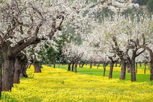 Weiter südlich ist das Gebiet von Llucmajor eine gute Option, um die blumigen Mandelbäume sowie die Umgebung von Gemeinden wie Manacor, Sant Llorenç oder Son Servera während einer ruhigen Fahrt zu erkunden. Im nördlichen Teil Mallorcas blühen die Bäume zahlreich entlang der Straße von Sóller oder in der Umgebung der Finca de Raixa, einem typisch mallorquinischen Besitz in der Gemeinde Bunyola.