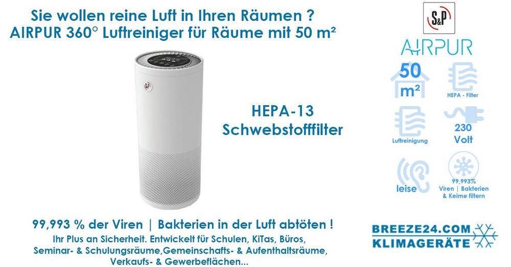 Saubere Luft durch AIRPUR 360° Luftreiniger mit HEPA 13 Filter für 50 m² Raumfläche