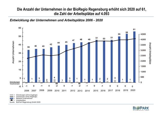 Die aktuelle Entwicklung der Life Science Firmen in der BioRegio Regensburg zeigt trotz der Corona Krise eine leicht steigende Anzahl der Firmen und Mitarbeiterzahlen in Ostbayern auf. Die von der BioPark Regensburg GmbH vorgestellten neuen Geschäftszahlen für 2020 zählen für den Cluster in Ostbayern 61 Firmen und 4.093 Mitarbeiter.