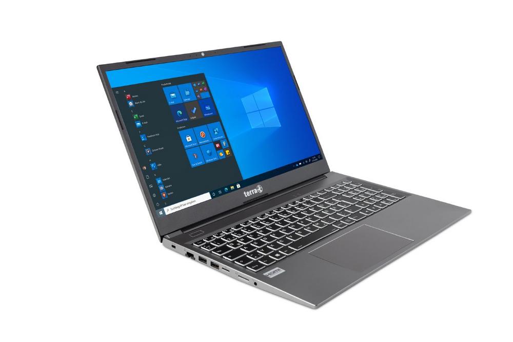 Das TERRA MOBILE 1500 besitzt neben der 6-Kern AMD CPU darüber hinaus ein Non-Glare Full HD (1920×1080) Display, 8 GB DDR4 RAM, 500 GByte SSD und Windows 10 Home oder Pro, 1x USB 3.2 Type A, 1x USB 3.2 Type C, 2x USB 2.0 Typ A, HDMI, LAN, WLAN und Bluetooth 5.0.