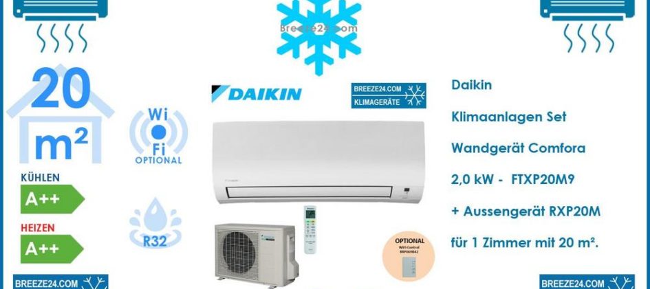 Daikin Klimaanlagen Set Wandgerät Comfora 2,0 kW – FTXP20M9 + RXP20M R32 für 1 Zimmer mit 20 m²