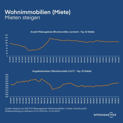 Wohnimmobilienmarkt: gestiegene Mieten, stabile Angebotspreise