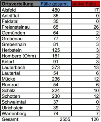 Am Freitag meldet das Gesundheitsamt des Vogelsbergkreises 13 bestätigte Neuinfektionen mit SARS-CoV-2 im gesamten Kreisgebiet. Damit gibt es seit Beginn der Corona-Pandemie im Vogelsbergkreis insgesamt 2555 Corona-Fälle. Bei einem bereits registrierten Fall wurde im Rahmen von Laboruntersuchungen die Virusvariante B.1.1.7 nachgewiesen. Seit Mitte der Woche meldeten sich 48 Menschen beim Gesundheitsamt als genesen. Aktuell betreut […]