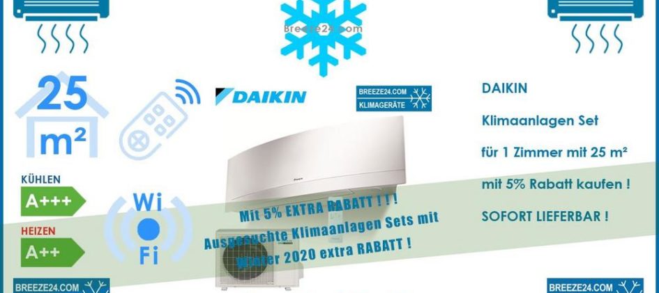 Jetzt kaufen mit 5% Winter Rabatt ! ! ! Daikin Klimaanlage Wandgerät Emura Wifi 2,4 kW – FTXJ25MW + RXJ25M R32 für 1 Zimmer mit 25 m² Daikin Klimaanlage mit einem Wandgerät für 1 Zimmer mit 25 m² Innengerät Daikin Wandgerät Emura FTXJ25MW • Bemerkenswerte Verblendung von edlem Design mit technischer Spitzenleistung mit einem eleganten […]