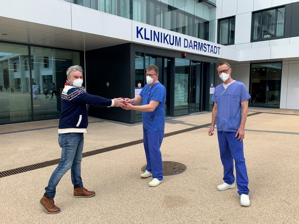Michael Naab und Gunnar Gölzenleuchter, Stationsleitungen der Corona-Intensivstation am Klinikum Darmstadt, haben diese Gutscheine gerne angenommen und freuen sich über diese Anerkennung: "Wir machen eigentlich nur unsere Arbeit", sagen Sie. "Aber für uns hat Corona Gesichter, bei uns liegen die Menschen, wir erleben sie mit ihrem Schicksal und wir nehmen Anteil an ihrer Krankheit und Behandlung – jeden Tag."