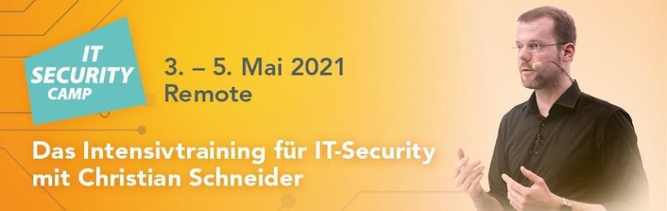 Vom 3. bis 5. Mai 2021 präsentiert die Entwickler Akademie das Intensivseminar für IT-Security ein weiteres Mal im Online-Format. Das IT Security Camp bietet während drei Workshoptagen einen ausführlichen Einstieg in die Thematik der IT-Sicherheit. Das Konzept der Schulung ist mit seinem hohem Übungsanteil praxis- und umsetzungsorientiert. Das Training mit Christian Schneider, der als freiberuflicher […]