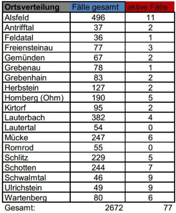 Das Gesundheitsamt des Vogelsbergkreises teilt mit, dass es am Mittwoch 15 Neuinfektionen mit SARS-CoV-2 verzeichnet. Die Neuinfektionen sind über das gesamte Kreisgebiet verteilt. Insgesamt steigt die Gesamtzahl der Fälle seit Beginn der Corona-Pandemie auf 2672 im Kreisgebiet. Vier Menschen meldeten sich am Mittwoch bei der Behörde als genesen. Die Zahl der aktiven Fälle im Vogelsbergkreis […]