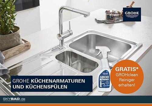 Entdecken Sie das komplette Sortiment an Grohe Küchenarmaturen und Küchenspülen auf skybad.de. Für einen begrenzten Zeitraum und nur solange der Vorrat reicht, schenken wir Ihnen einen GROHE GROHclean Reiniger. Seien Sie daher schnell und sichern Sie sich mit dem Kauf einer GROHE Küchenarmatur und Küchenspüle einen praktischen Reiniger.