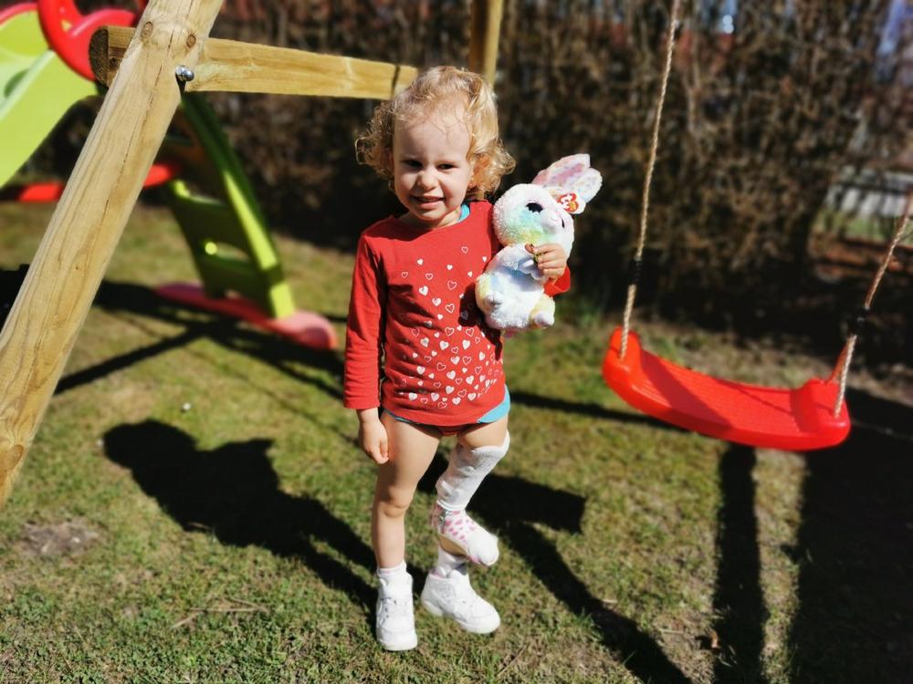 Das ist auch bei Filippa der Fall. Der Femurdefekt wurde bei den Kontrolluntersuchungen während der Schwangerschaft nicht diagnostiziert. Um so größer war der Schock der Eltern nach der Geburt: Filippas linker Oberschenkelknochen, das linke Hüft- und Kniegelenk fehlen fast ganz. Dadurch ist ihr linkes Bein sehr viel kürzer als das rechte – es reicht nur bis zum rechten Knie, und es lässt sich kaum strecken. Filippa ist aber trotzdem ein kleiner Wirbelwind – sie kriecht und krabbelt meist auf allen Vieren durch die Gegend. Den Eltern bricht bei diesem Anblick natürlich immer wieder das Herz. Sie haben verzweifelt nach einer Lösung gesucht und Filippa bei mehreren deutschen Spezialkliniken vorgestellt – ohne Erfolg. Schließlich sind sie auf den amerikanischen Beinverlängerungsspezialisten Dr. Paley aufmerksam geworden. Er ist der Einzige, der dem Mädchen tatsächlich ein gesundes Leben auf zwei Beinen schenken kann. Die Deutsche Lebensbrücke betreut mehrere Kinder mit einem solchen Femurdefekt, und Dr. Paley hat schon einige dieser Kinder erfolgreich operiert. Deshalb unterstützt die Deutsche Lebensbrücke die kleine Familie.