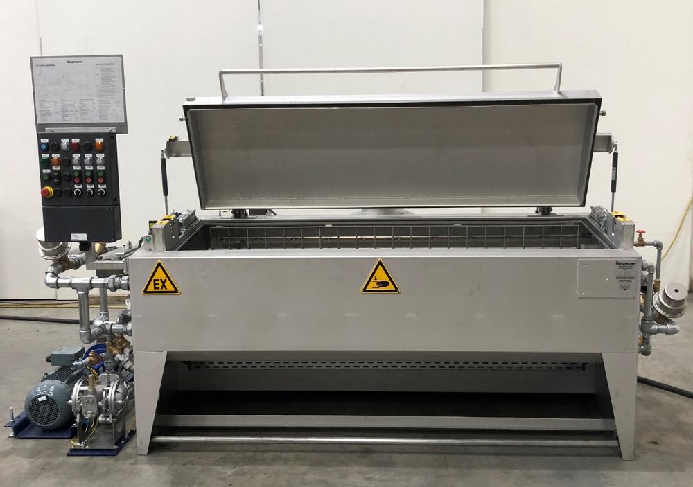 Im Gegensatz zum Vorgängermodell verfügt der Typ CLEANfleX über einen speziell geformten Deckel, der eine bequeme Beladung ermöglicht und ausgestattet ist mit einer pneumatischen Spannvorrichtung. Die Erfassung des Füllvolumens im Waschlösemittelbehälter, abgeschottet zur Waschkammer, erfolgt über eine hydrostatische Messung. Es werden mehrere Füllniveaus erfasst und am Schaltschrank angezeigt. Groß dimensionierte, von außen herausnehmbare Siebkörbe schützen Pumpten, Rohrleitungen und Spritzsysteme vor Verunreinigungen. Diese Siebkörbe sind leicht zugänglich auf der Rückseite der Anlage platziert.