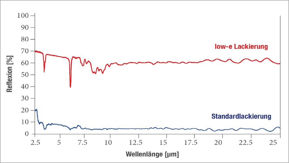 Mit ROWALID® TIM-95210 steht Kunden nun ein lösemittelhaltiges Produkt mit ausgezeichneten low-e Eigenschaften zur Verfügung. Eine entsprechende Lackierung von PVC-beschichteten Geweben resultiert in einer diffusen Infrarot-Reflexion von ca. 60 % und einer Emissivität von kleiner 0,3. Währenddessen weisen Standard-Produkte eine Reflexion von nur gut 5 % und eine Emissivität von etwa 0,9 auf. Diese besondere Eigenschaft von ROWALID® TIM-95210 lässt sich zum Beispiel für die Wärmeregulierung von Zeltkonstruktionen nutzen. Befindet sich die low-e Beschichtung auf der Außenseite des Zeltes, kann die Aufheizung durch solare Einstrahlung vermindert und der Energiebedarf für die Klimatisierung verringert werden. Wird wiederum die Innenseite mit einer low-e Lackierung versehen, gelangt weniger Wärme aus dem Zelt nach außen, und es muss weniger geheizt werden.