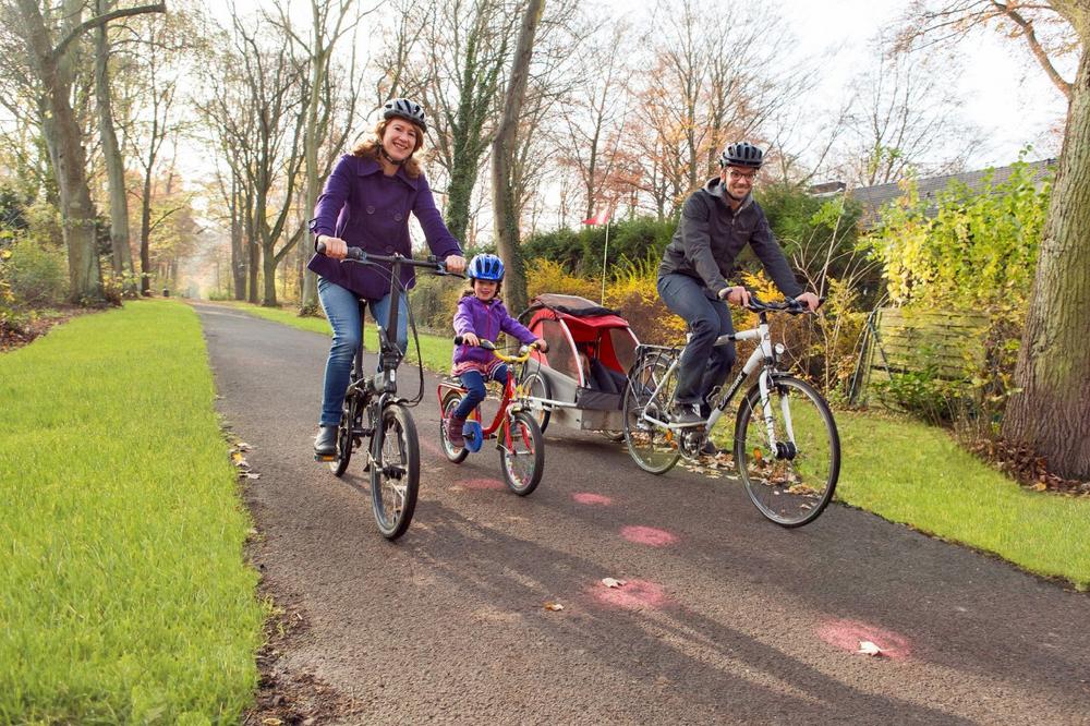 Da die Fahreigenschaften des Rades sich mit Kindersitz und auch Anhänger grundlegend ändern, empfiehlt es sich in jedem Fall, eine Proberunde zu fahren. Ausweichen, Bremsen oder Fahrten auf Kopfsteinpflaster wollen geübt sein. Auch die Kinder sollten vor dem Kauf Probe sitzen. Nur so lässt sich feststellen, ob Fußstützen und Rückenlehne zur Größe des Kindes passen. Ebenfalls wichtig ist die Stabilität des Fahrrads, wenn die Kinder in den Sitz gesetzt werden. TÜV Rheinland-Experte Berthold Tempel empfiehlt daher, sich im Fachhandel nach stabilen Ständern wie etwa Zweibeinständern umzuschauen. „Man sollte auch bei stabilem Ständer die Kinder niemals unbeaufsichtigt auf dem Sitz lassen. Denn die Sturzgefahr ist dennoch hoch“, sagt Tempel. Ob Kindersitz oder Anhänger – in jedem Fall gilt: vor dem Start unbedingt anschnallen. Das Tragen eines Helmes ist zwar nicht Pflicht, wird aber dringend empfohlen – und nicht nur für das Kind.