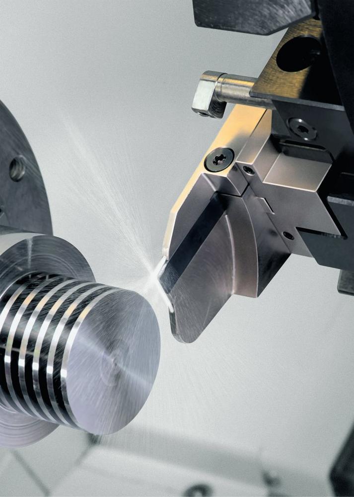 Although a large part of the heat generated by turning is dissipated in the chip, the temperatures prevailing in the cutting zone are enormous and this causes problems for the cutting tool. The heat can reach temperatures in excess of 1000degC, depending on the material, feed and rpm. This activates thermal processes that cause the cutting tool to wear more quickly. In extreme cases, the tool can even burn out after a short time. A more positive geometry and cutting speed adapted to the process may provide a superficial remedy, but this either causes long-term costs or lowers productivity.