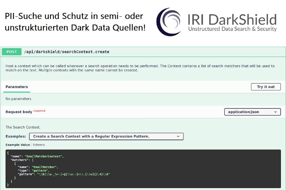 IRI DarkShield Version 4 verfügt über ein Remote Procedure Call (RPC) Application Programming Interface (API) für die Suche und Maskierung von unstrukturiertem Text. Die API ermöglicht die Verwendung von DarkShields Suchmatchern und Maskierungsregeln außerhalb des Kontexts von Dateien.