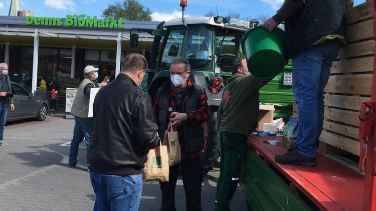Bio-Bauern protestieren vor dennree für heimische Kartoffeln