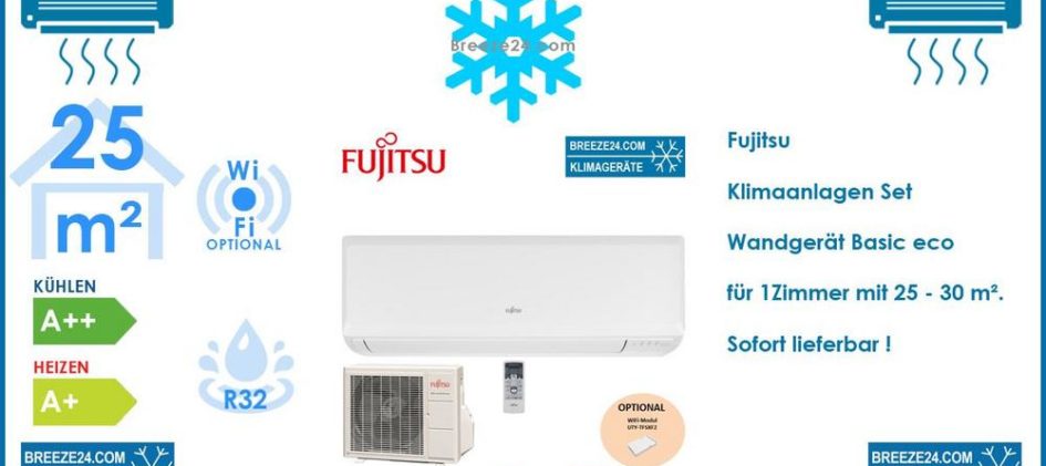 Fujitsu Klimaanlage Basic eco ASYG09KPCA + AOYG09KPCA R32 für 1 Zimmer mit 25 – 30 m²