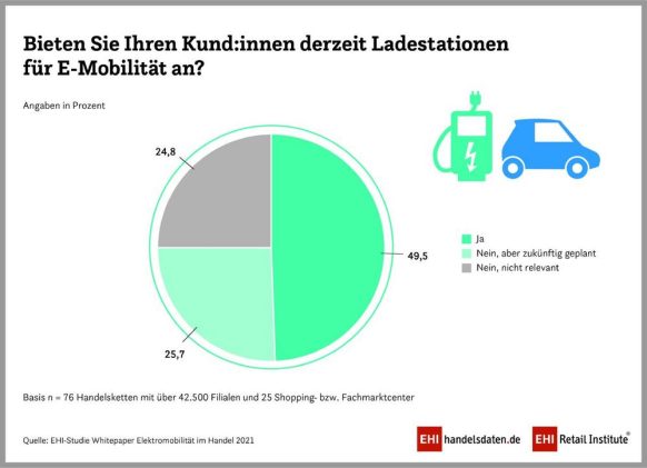Die Anzahl der E-Autos in Deutschland steigt rasant. Auf Deutschlands Straßen sind derzeit fast 570.000 Elektroautos unterwegs. Bis März dieses Jahres hat die Bundesnetzagentur fast 38.000 Ladepunkte erfasst. Der Handel stellt zurzeit rund 10 Prozent der Ladeinfrastruktur für Elektromobilität, die Planungen lassen eine deutliche Steigerung annehmen. Insgesamt betreiben Handelsketten über 1.600 Ladestationen in Deutschland, das sind rund 3.800 einzelne Ladepunkte. 1.250 weitere Ladestationen, also rund 3.000 Ladepunkte sind in diesem Jahr geplant, so die Bestandsaufnahme, die das EHI im Rahmen der Initiative E-Mobilität im Whitepaper „Elektromobilität im Handel […]