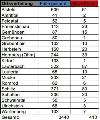 Das Gesundheitsamt des Vogelsbergkreises meldet am Samstag 56 Neuinfektionen mit dem Corona-Virus. Damit steigt die Gesamtzahl der Fälle im Kreis auf 3440. 14 Menschen haben sich als genesen gemeldet. Die Behörde betreut zurzeit 410 aktive Fälle. Die Sieben-Tages-Inzidenz für den Vogelsbergkreis steigt laut Robert-Koch-Institut auf 224,3 – hessenweit liegt der Wert bei 158,4. Die Übersicht […]