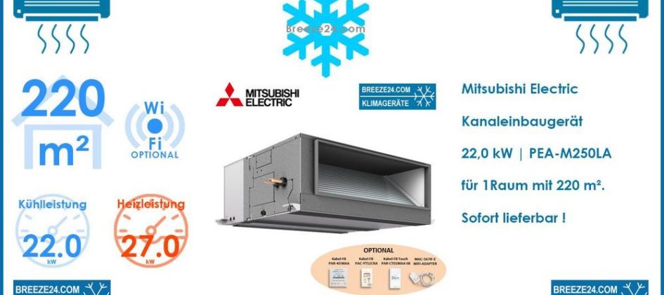 Mitsubishi Electric Kanaleinbaugerät für 1 Raum mit 220 m² | zum Kühlen | Heizen | Entfeuchten | Luftreinigen. Mitsubishi Electric Kanaleinbaugerät 22,0 kW PEA-M250LA Hohe Pressung R32 für 1 Raum mit 220 m² Mitsubishi Electric Kanaleinbaugerät PEA-M250LA Hohe Pressung | 22.0 kW | 27.0 kW Das Kanalgerät von Mitsubishi Electric kann im Gewerbe- und Privatbereich […]