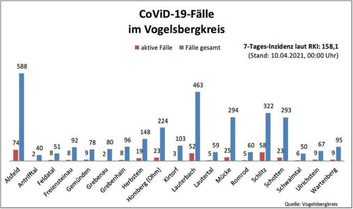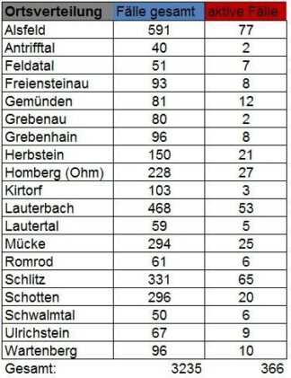 Wie das Gesundheitsamt des Vogelsbergkreises am Sonntag mitteilt, sind bei der Behörde 32 weitere Nachweise über eine Erkrankung mit SARS-CoV-2 eingegangen. Damit steigt die Gesamtzahl der Fälle seit Beginn der Corona-Pandemie auf 3235. Die Behörde betreut aktuell 366 aktive Fälle. 13 Menschen meldeten sich bei der Behörde als genesen. Im Zusammenhang mit einer CoViD-19-Erkrankung ist […]