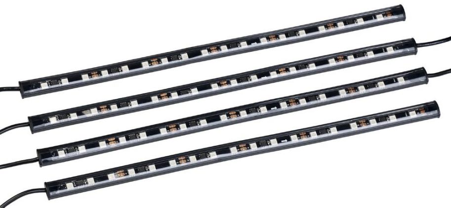 Lescars 4er-Set Kfz-LED-RGB-Streifen mit Fernbedienung, Bluetooth, App