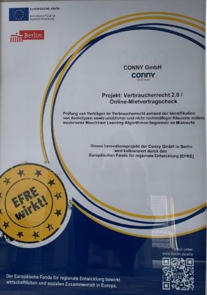 . Das Berliner Legal Tech Unternehmen CONNY (www.conny.legal) erhält Fördermittel der Investitionsbank Berlin, kofinanziert durch EU-Mittel (EFRE) Die aus dem Förderprogramm Pro FIT erhaltenen Mittel unterstützt den Aufbau eines innovativen Projektes zur Stärkung von Mieterrechten und des Verbraucherschutzes Die erfolgreiche Beantragung des siebenstelligen Projektgesamtvolumens erfolgte durch die Fördermittelberatung FörderProtech GmbH (www.foerderprotech.de) CONNY GmbH, ein Technologie-Startup […]
