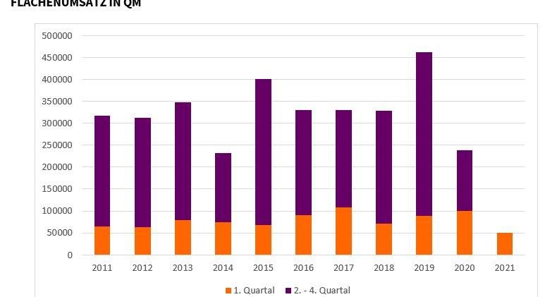 Im ersten Quartal 2021 verzeichnet imovo – Partner der NAI apollo Group – in Düsseldorf (nur Stadtgebiet, kein Umland) einen Flächenumsatz von insgesamt 50.244 qm. Dies entspricht einem Rückgang des Flächenumsatzes von fast 50 Prozent im Vergleich zum Vorjahreszeitraum (1. Quartal 2020: 100.267 qm). Das Quartalsergebnis liegt damit 24 Prozent unter dem 10-Jahresdurchschnitt von 66.243 […]