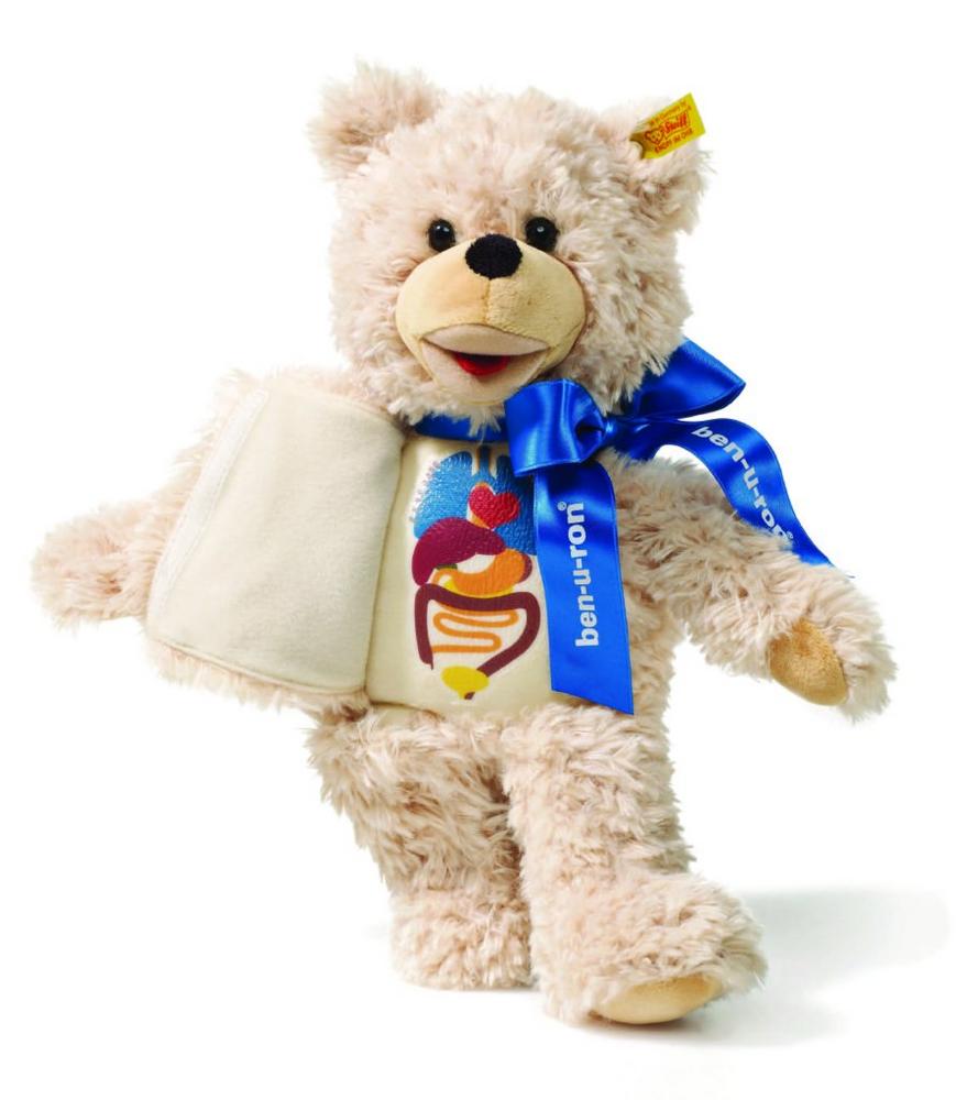 Kindern kann die Angst vorm Arzt genommen werden, wenn sie verstehen, was dort passiert. Um ihnen spielerisch ihren Körper näher zu bringen, wurde gemeinsam mit Steiff der Medi-Teddy entwickelt. Durch aufklappbare Beine und Arme, Bauch und Rücken können die Kleinen erste Einblicke in ihren Körper gewinnen.