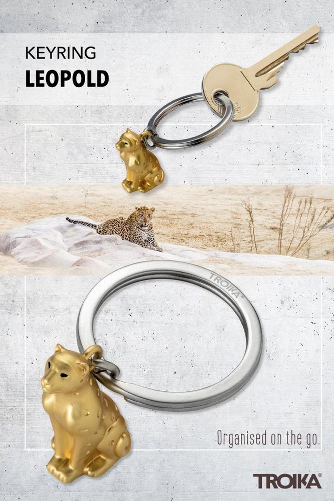 Keyring, leopard, cast metal, matt, Gold