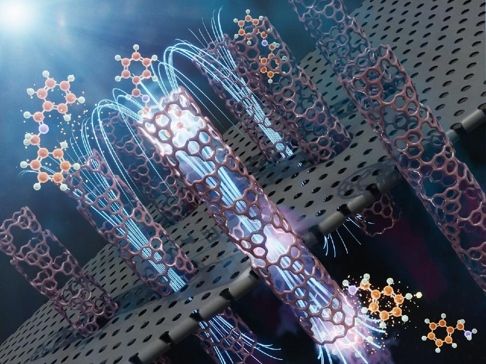 In ihren Reaktionsexperimenten entwickelte die Savateev-Gruppe eine Membran, die aus Milliarden von parallel angeordneten Kohlenstoffnitrid-Röhren besteht. Jedes dieser Röhrchen verfügt über einen Durchmesser von wenigen Nanometern, was 1/10.000 eines menschlichen Haares entspricht. Sie beobachteten, dass Wasser ohne jegliche Reibung durch sie hindurchgleitet. Dabei wird Licht als Treiber für die chemische Umwandlung von verschmutztem zu sauberem Wasser genutzt, während der durch die Membran erzeugte Quanteneinschluss auch die Energie des Lichts mit bisher unerreichter Effizienz lenkt. Die konkave Oberfläche der parallelen, fast eindimensionalen Röhren dient als eine Art Spiegel, der das interne elektrische Feld im Inneren der Nanoröhre konzentriert. In Verbindung mit dem von außen einfallenden Licht erhöht dies die Reaktionsgeschwindigkeit enorm. „Im gewöhnlichen 3D-Raum sind diese Reaktionsgeschwindigkeiten von Millisekunden einfach unmöglich,“ sagt Dr. Savateev.