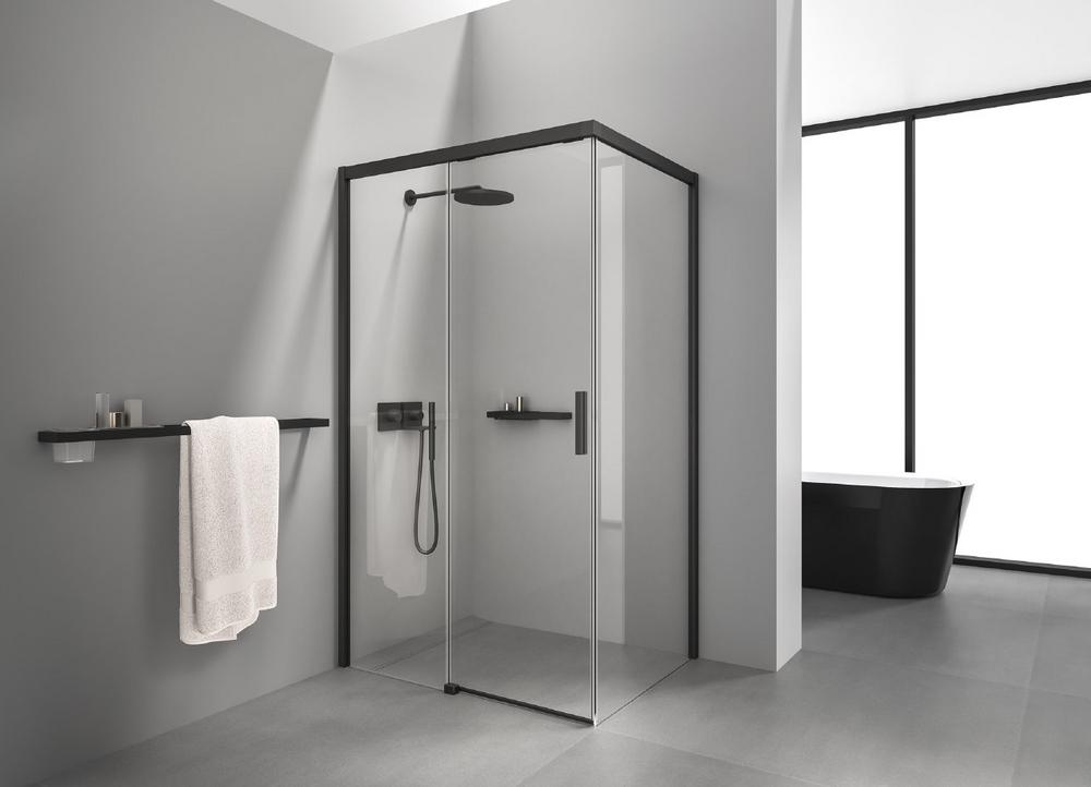 Duschabtrennungs-Doppelserie jetzt auch mit iF Design Award ausgezeichnet / Markantes puristisches Design und innovative technische Details / Große Auswahl an Varianten / In allen RAL-Farben erhältlich / Lange Nutzungsdauer durch hochwertige Materialien / Hohe Reinigungsfreundlichkeit und Hygiene / Bis zu 13 Varianten für jede Einbausituation / Ohne Bodenprofil / Leicht zu betätigende und geräuscharme Gleitelemente mit innovativer Magnetführung /