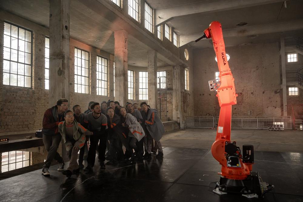 Normalerweise kommt der KR IONTEC des Augsburger Automatisierungsspezialisten in der industriellen Produktion für Aufgaben wie Schweißen, Palettieren oder Montieren zum Einsatz. Doch als Leihgabe für das Staatstheater Augsburg tritt der Roboter diesmal auf einer Theaterbühne mit 17 Tänzerinnen und Tänzern in Interaktion. Der Fokus der Inszenierung liegt auf dem Thema Mensch-Maschine-Interaktion, technische Programmierung steht dabei menschlichem Bewusstsein gegenüber.