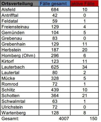 Das Gesundheitsamt des Vogelsbergkreises meldet am Dienstag keine Neuinfektionen mit dem Corona-Virus, sodass die Gesamtzahl der Fälle seit Beginn der Pandemie bei 4007 stagniert. Zurzeit betreut die Behörde 150 aktive Fälle – zwölf Menschen haben sich als genesen gemeldet. Die Sieben-Tages-Inzidenz für den Kreis ist laut Robert-Koch-Institut auf 66,3 gesunken – hessenweit liegt der Wert […]