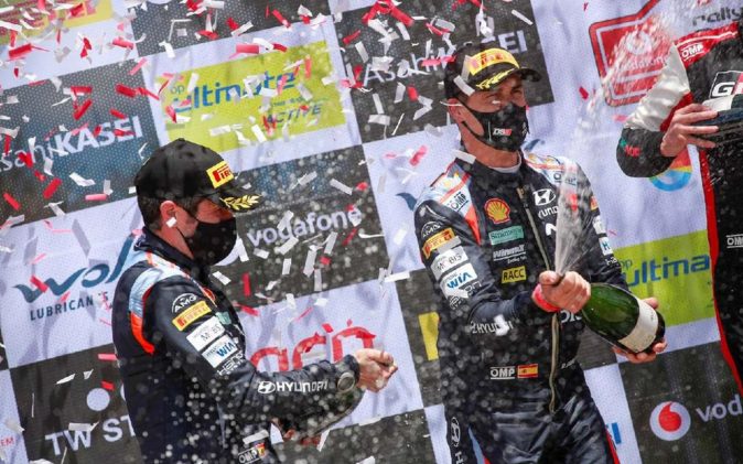 Dani Sordo im Hyundai i20 Coupe WRC in Portugal auf dem Podium