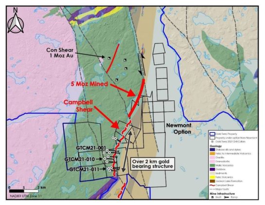 Gold Terra bohrt 5,99 g/t Au über 1,45 m in der Campbell Shear und bestätigt damit die Kontinuität der Zone Kam Point North über 200 m in Fallrichtung, Newmont Option, NWT
