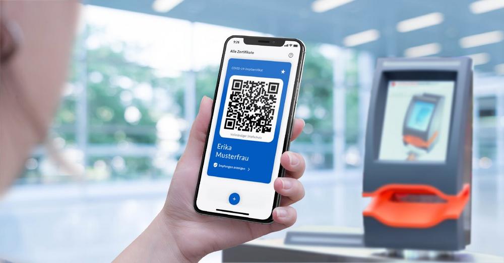Alternativ zur Online-Verifizierung können Teilnehmer ihren Nachweis auch vor Ort vorlegen. Hierfür wurde das Leseterminal „Speedy“ im Messe-Eingangsbereich um die Fähigkeit erweitert, digitale Nachweise einzuscannen. Alternativ dazu kann auch Personal vor Ort die Nachweise per Funkhandscanner erfassen. In beiden Fällen findet die Verifizierung sofort statt.
