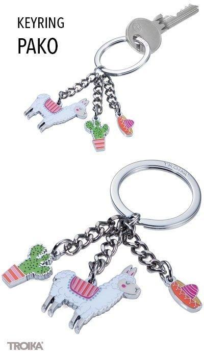 Keyring with 3 charms, alpaca, cactus, sombrero, cast metal / enamel, shiny, Multicoloured