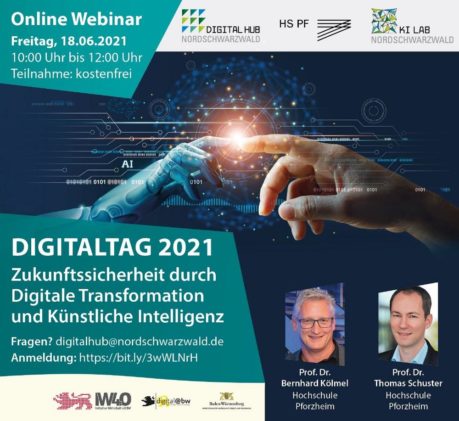 „Digitalisierung für BürgerInnen und UnternehmerInnen erlebbar und verständlich machen“ – unter diesem Motto stand der bundesweite Aktionstag am 18. Juni 2021 mit mehr als 1.400 angemeldeten Veranstaltungen verschiedenster Akteure. Mit dabei natürlich auch der Digital Hub Nordschwarzwald mit seinen drei Standorten in Pforzheim/Enzkreis, Nagold und Horb, der gemeinsam mit der Hochschule Pforzheim und dem KI-Lab […]