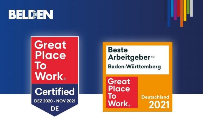 Belden, ein weltweit führender Anbieter von industriellen Netzwerklösungen, hat erneut seine herausragende Stellung als einer der attraktivsten Arbeitgeber in Deutschland bewiesen. Nach der erfolgreichen Zertifizierung des Unternehmens als Great Place to Work in Deutschland vom Dezember 2020 rangieren Belden und Hirschmann nun auch unter den 27 besten Arbeitgebern in Baden-Württemberg. Der Standort Neckartenzlingen erreichte den […]