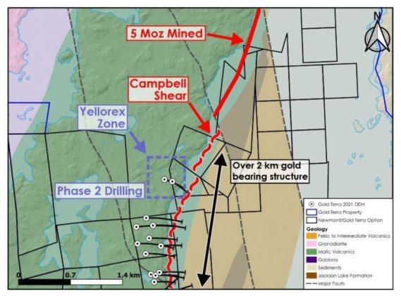 Gold Terra Announces Phase 2 Drilling Program on High-Grade Yellorex Gold Zone, Campbell Shear South of Con Mine, Northwest Territories