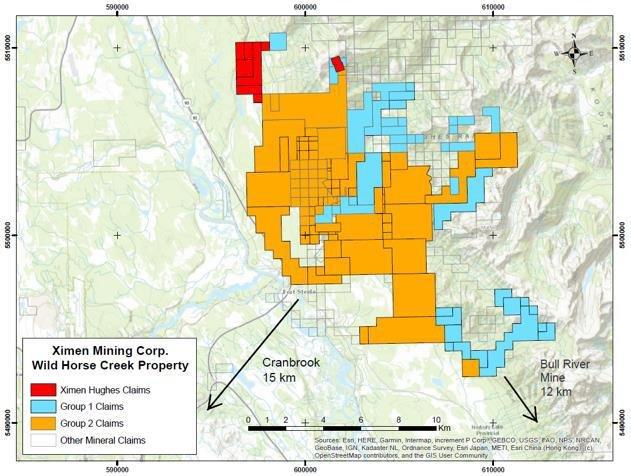 Ximen recently acquired a total of 139 mineral claims covering 12,767 hectares near historic Fort Steele, named the Wild Horse Creek property. The Wild Horse Creek property adjoins Ximen’s Hughes Range claims (7 claims and one lease, 453 hectares).