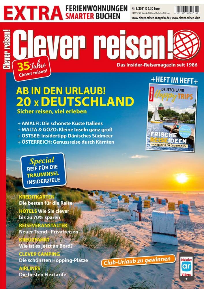 Info: Reisemagazin Clever reisen! 3/21. Für 6,50 Euro am Kiosk oder bestellbar auf www.clever-reisen-magazin.de